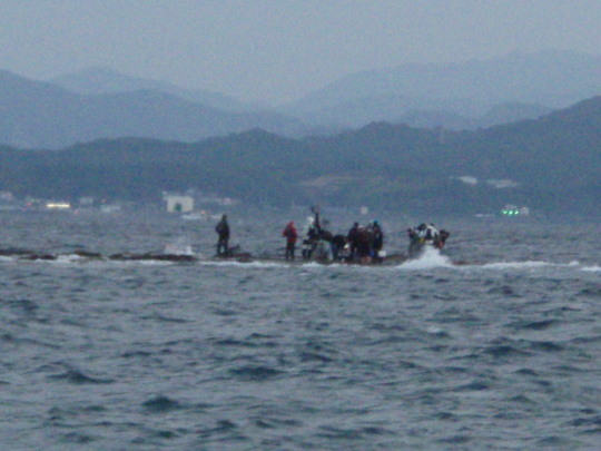 降り立った磯は塔島。奇岩があって足元洗う場所。