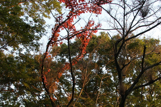 紅葉も時期だから、京都の上桂川に抜ける例の道あたりに行きたいとも思ったりもしていたが、まだもう少し早そう。本格的な紅葉はあとちょっとやろうな〜と言いなだめ、ふと空を見るとそんなふうに雲がなくなっていた。冷たい風が入りだした証拠だ。