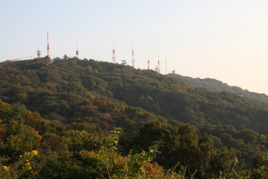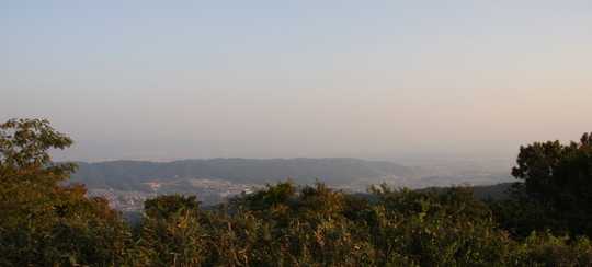山から見る大阪は完全にかすんでいて、肉眼に頼るとほかに見るすべもないのでほぼ真っ白。街から山を見た時は蒼い感じがしたんだけれど。