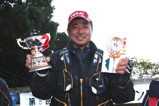 優勝はいち早くデイリースポーツの特集で御存じの方も多いでしょうけど、姫路の山田富士さん。兵庫県釣り連盟の会長さんです。すごくやる気満々だったらしく、私と違って早めに睡眠を取られた模様。