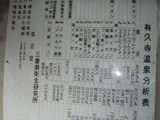 紀伊長島界隈では古里温泉、鹿の湯温泉など有名ですが、車もすれちがうことのできない細い道を登っていくと、有久寺温泉と言うものがあります。