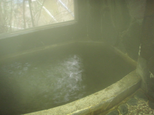 温泉そのものの効能はすこぶるあるらしく、飲泉もできるとありますが私はちょっと遠慮しました。湯船は岩風呂になっており大人なら二人しか入れないほどの広さ。