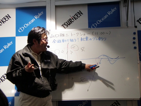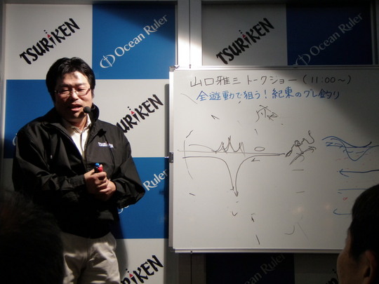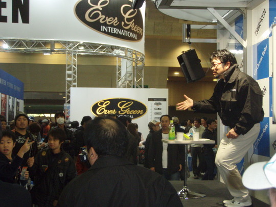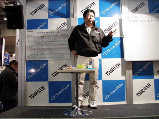 2月6日の午前11時に、ウキとグッズの老舗メーカー「釣研」のブースで、フィッシングショーという最大のイベントの中でトークショーをさせていただきました。