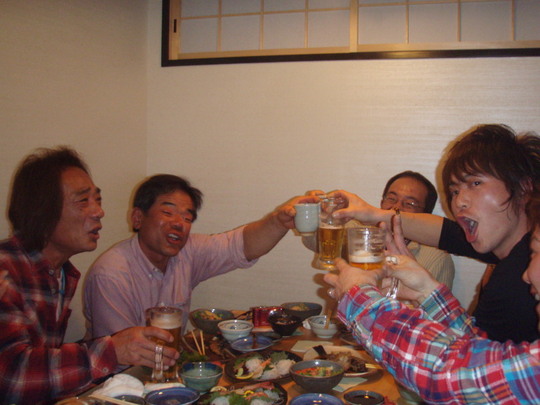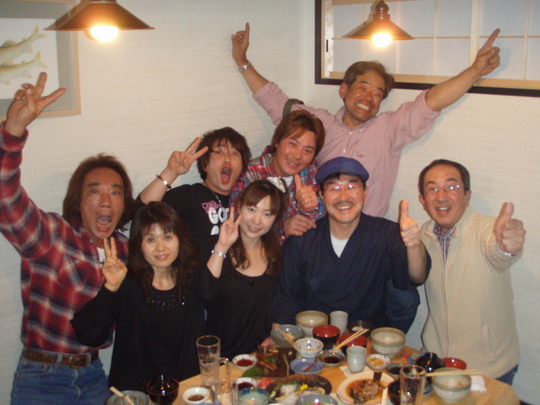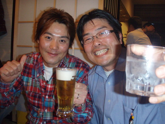 ずっと前から長い友達の梅屋智徳君もシマノジャパンカップで3位と言う好成績を収めたこともあり、一緒に乾杯〜い。