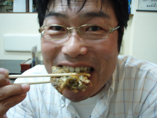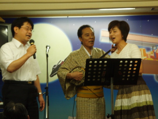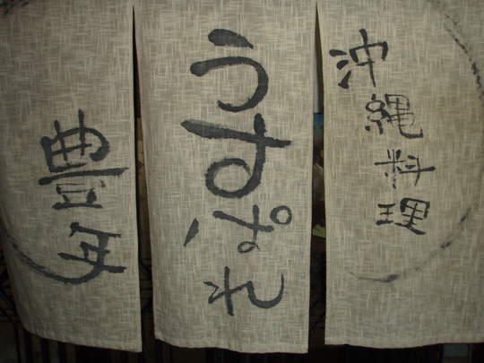 お客さんは姫路の橋本さん、大阪の細谷さんに西浦さん、そして巽さんとの6人で駅前の「うすぱれ 豊年」沖縄料理店に行きました。橋本さんがこの店の三神(サンシン)の師匠さんに月に何度か三神を習ってあるとかで・・。
