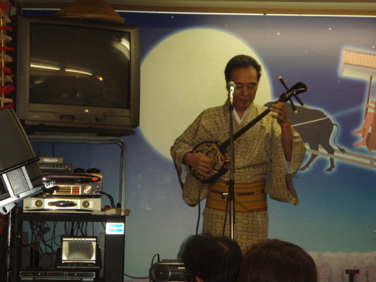 店は広くてステージもあります。ここで見事な三神と島唄を聞くことができます。