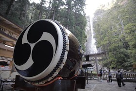 このたび那智大社の御瀧を前に和太鼓とドラムのユニット「神紗」の特別奉納演奏が4月10日に行われました。