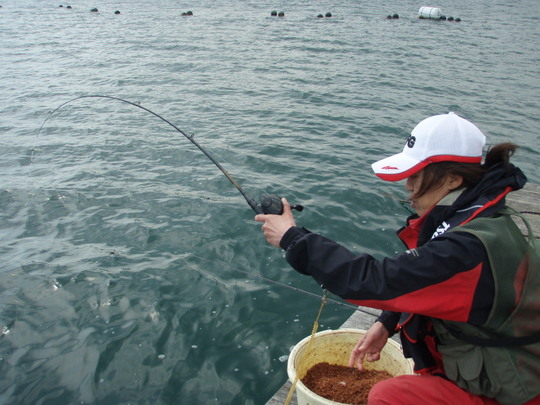 親子連れの釣り人で、磯竿を使って、形にとらわれない釣り方で大きなチヌを釣られました。