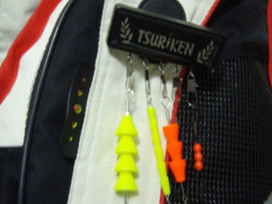 「かっこいいでしょ」なんていう歳ではありませんが、釣研のパーツホルダーセットはいろんな使い方ができます。特にトーナメントに出ている方はすでにいろんな形状、方法で小物をすぐ装着できるようにアレンジして使用しておられます。写真のパーツホルダーセットはオリジナルのクイックセッター形状でハードとソフトがあります。潮受けゴムやフカセウキゴムなどゴム素材の製品など収納できます。逆に小粒シモリやテーパーヨウジ等はソフトで線径の細い方へ。使用するときはもちろん素早く対応できますが、準備する時もワンタッチで便利です。クイックセッターですから道糸を通してずらせば、糸通しもワンタッチ。