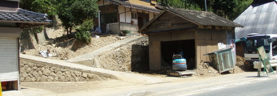 家の中まで泥流が入り、家も商店も全く機能しない状態になっています。地形や家の向きによっては影響の少なかったおところもあるようですが、しかし言葉で表せば「悲惨」。
