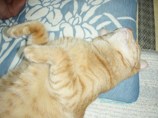 うちの猫、夜がとっても寝苦しいのか、昼間にちょっとエアコンつけたら、スースー寝てしまいました。