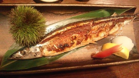 一足早く秋の料理を堪能してきました。毬栗(イガクリ)と秋刀魚です。