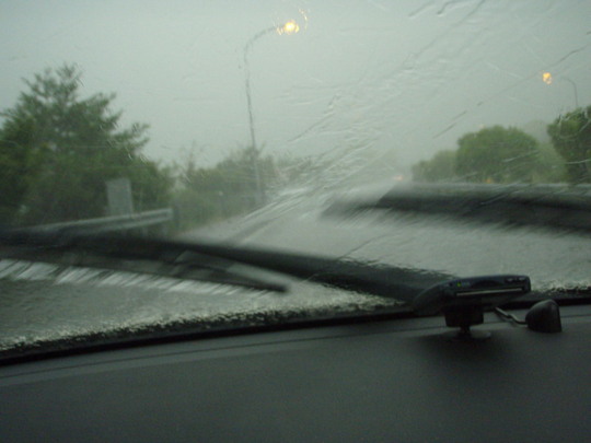 夏の勢いは不安定な空模様からややかき消されてはいましたが、熱気、活気のある楽しいBBQでした。これは仕事から帰ったらご紹介しましょう。BBQの最中は大雨にたたられず、うまくしのげてとってもありがたかったです。ところが片付け終わっての帰り道、雷とバケツの水をひっくり返したような集中豪雨。ちょうど紀の川SAに到着した時でした。いきなりの集中豪雨。