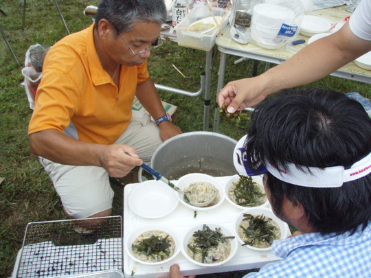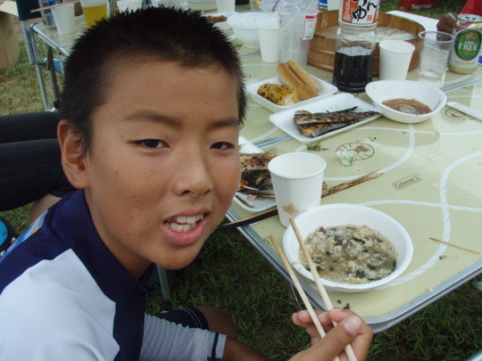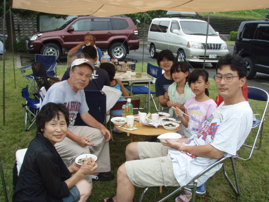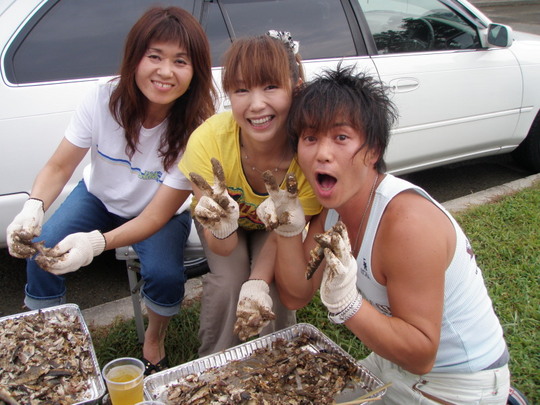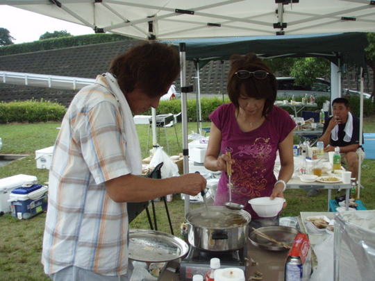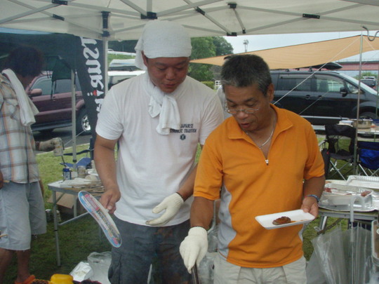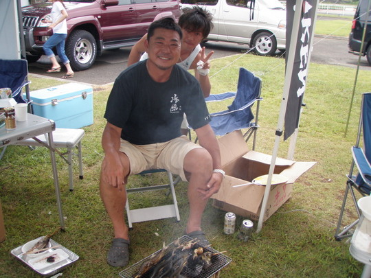 各、持ち場が暗黙の了解で決まり、それぞれが分担します。中でも恒例の焼きそば、てんぷら、焼き鳥は絶品。しかもお肉はフィレ。こんなBBQができてとっても幸せです。焼き鳥は200串。イサキは10匹(沼島産と南部産)