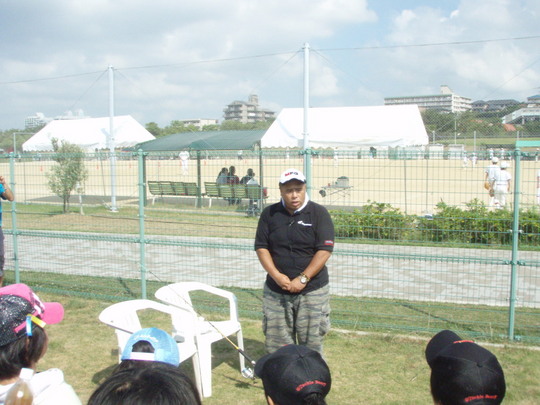 ここで、子供たちや保護者を集めて釣りの前の釣り方、マナー、安全に関してなど丁寧に教えている彼がO野ちゃんです。
