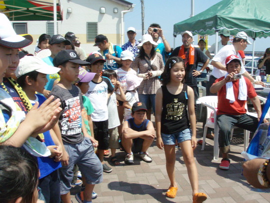 暑い中あの体格でご飯も食べずに親切な活動をひたむきに、そして会場を盛り上げ、笑わせて、なごませて・・・。(えらいな〜。)ほんとお疲れ様。