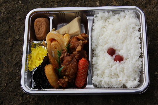 宇久井の弁当。日の丸で2段!華やかさはないけどおかずの栄養面はバランスがとれている。 |