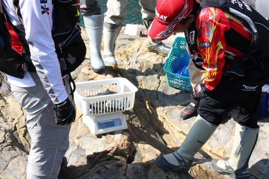 AGTというのはオール関西選抜グレ釣りトーナメントのことで、関西に籍をおく磯釣り愛好9団体で構成されている近畿釣り人の会が主催しています。釣りの振興発展と釣り技術の向上がその目的です。私も以前は近畿釣り人の会の事務局をしばらくしていて、この大会と磯釣りフェア、あるいは新春釣り人の会などが目玉行事でした。釣り大会はもう9回を数えます。毎年勝浦の清丸渡船土日の二日間を使って繰り広げられます。