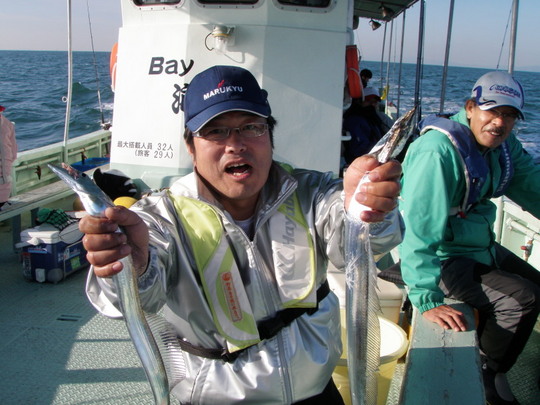 いつも懇意にしていただいている生島さんが釣ったのも、私が釣ったモノよりやや大きめ。それでも10月の終わりの太刀魚にしては小ぶりなのでやや不満。