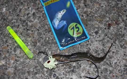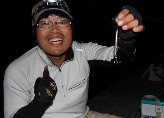 この時間に私としてはカミサンに『ピカピカどんどん』の説明したり、イワシカラーのルアーをほおってみたりといろんなことをやっているのです。実際に釣れる釣りもしたいのですが、夜釣り自身の経験がないため情報収集やら使ったことのない製品を試すためのいい機会であったりと、なかなかせわしなく動いてます。