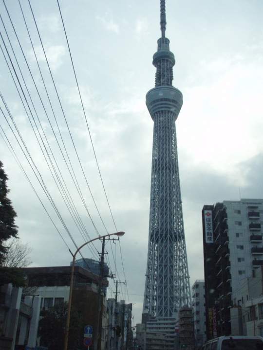 近すぎてタワー全部は写真に収まりません。魚眼レンズがほしいところです。