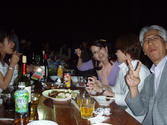 ビアガーデンが人気ですが、この日はビルの上でBBQです