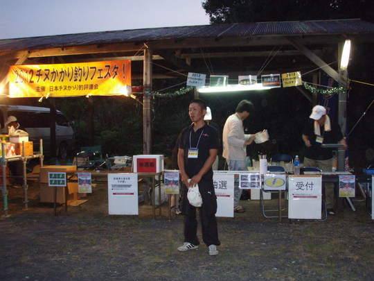 今回のこの大会は「掛かり釣りフェスタ2012」として日本チヌ係釣り評議会(会長;大西与志夫氏)が主催するチヌの掛かりを愛好する釣り師が2匹重量で競い合う大会。トーナメント等でなく和気藹々としたオープンな大会。