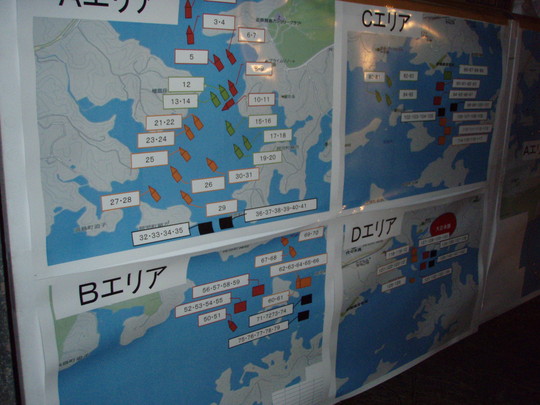 筏は4っつのエリアに分かれてくじ引きで番号の若い方から遠くの掛かり船からおろしていく。我々が揚がったのはくじ引きで126〜130の釣り場「Dエリア」。