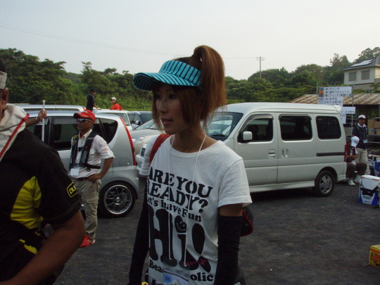 前に安曇川の鮎釣りやビルの屋上でのBBQで一緒だった釣りガールのMOGEちゃんも参加して、この日は大会賞品のプレゼンテーターです。