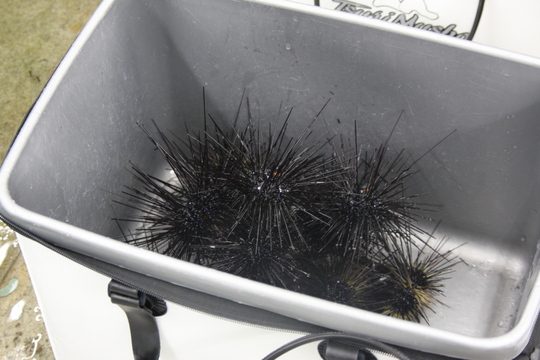 すさみの釣り餌店でウニを35ヶ購入。大畑さんに予約してもらっておいた。