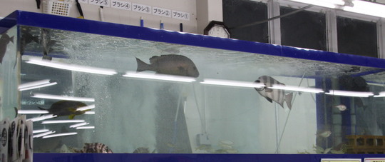• 水槽の中にはちゃんと石鯛がすい〜すい〜と泳いでいます。