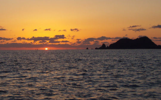 磯釣りのお客さんを磯に降ろした後、オキアミの天秤釣りで五目に挑戦と言ったところで、黒岩の沖合いに出てみた。