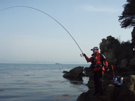 足元は非常に浅く竿2本ぐらい先が駆け上がり、その向こうは5ヒロほどの水深と思われます。
