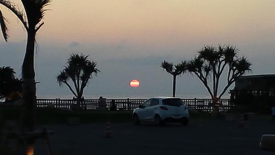 沖縄の海はほんと近くにあって濃い色をしてます。夕日はぎりぎりまで顔を出しているし、朝日は水面からいきなり顔を出してきます。
