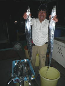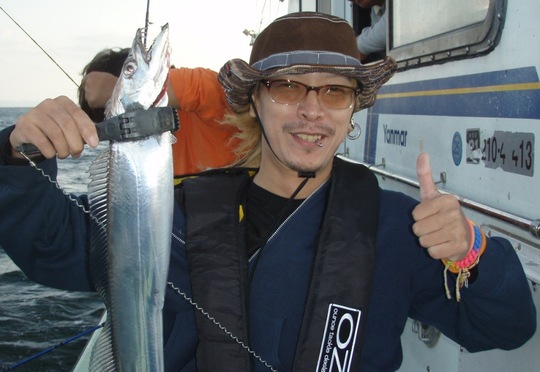 イイヅカコウジ君はなんでもそつなくこなすひと?というよりほぼ毎日武庫川などでオフショアの太刀魚を狙ってます。この日テンヤが初めてでPE1号で手巻きです。