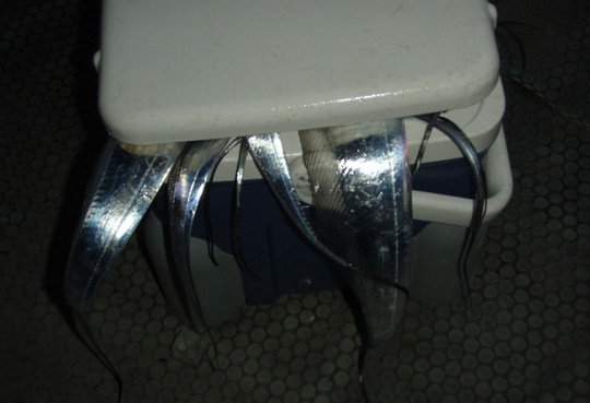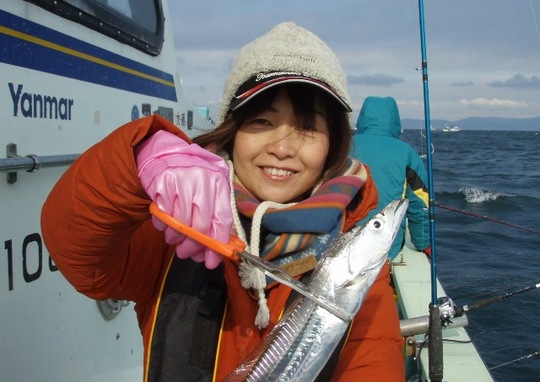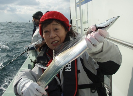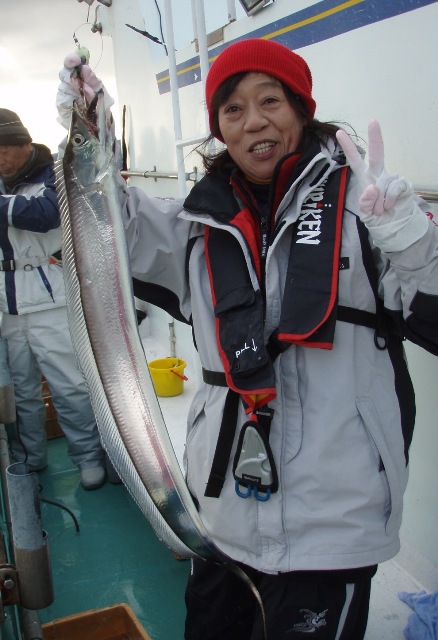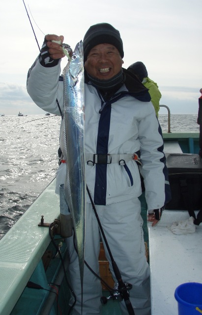水中で太刀魚の歯にでも触れたのか、あるいは前の傷が深かったのか、3回目はどなたかが釣った太刀魚が私の道糸にかかっていて、船べりへあげると同時にスパッ。あ〜〜。