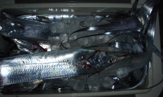 釣った太刀魚は塩焼き、刺身、しゃぶしゃぶ、てんぷら等で頂きます。