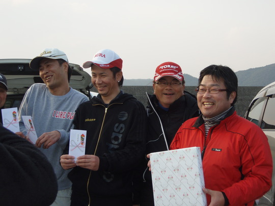 引いたくじは4番。松井社長と吉村君と乾正義くんと合わせて4名です。