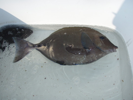 いろいろやっているうちにタカノハが釣れたり、イスズミが釣れたり、ガシラが釣れたり、小さい白いグレが釣れたり。この小さい白いグレはまるで夏にでもいてそうなグレ。高い水温に紛れて来てしまったか。しかしサイズからしたらまだまだ回遊するほどではない。