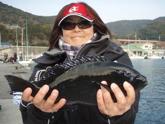 女性アングラーの大西満里子さんも33センチくらいのグレ。