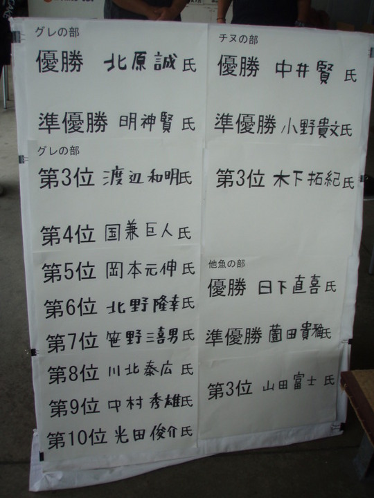 グレの優勝は紀州熊野釣り連盟に所属している北原さんです。AGT第5回大会でも優勝の経験があります。