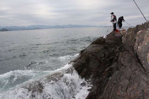 朝から沖にうねりがあってなかなか思うような場所に行けずじまいで、結局港前の灯台下にいきました。