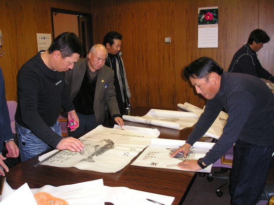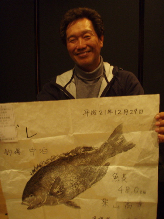 それでもみなさん結構器用な方が多くいい魚拓がたくさんあったようです。(ようですというのは私が審査に到着したのは・・・新年会の宴が始まってからでしたから・・・)