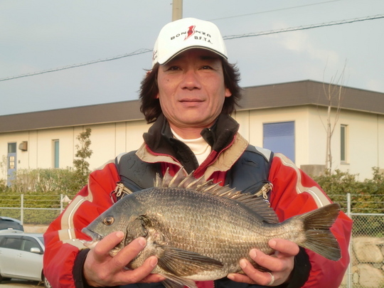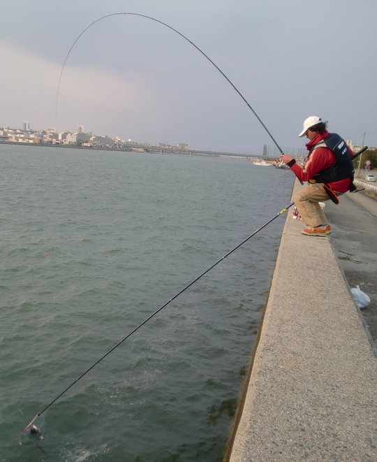 私の釣友で武庫川釣友会会長の山崎憲一さんが、陸っパリでチヌを釣りに行きました。