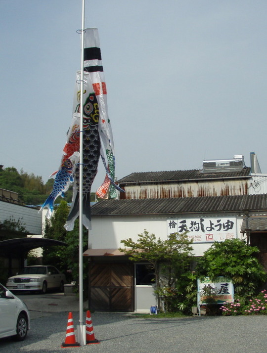 途中由良にある天狗醤油でもともと昔から大きな家族、家を持った家庭にあったような立派な美しい鯉のぼりがありました。