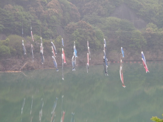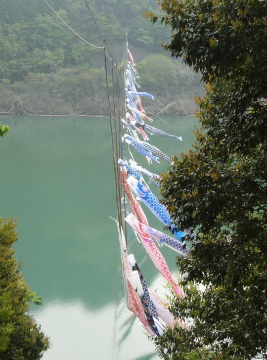 そして日高に向かい途中、椿山ダムにワイヤーで連なるたくさんの鯉のぼりを見ました。こっちは圧巻でした。