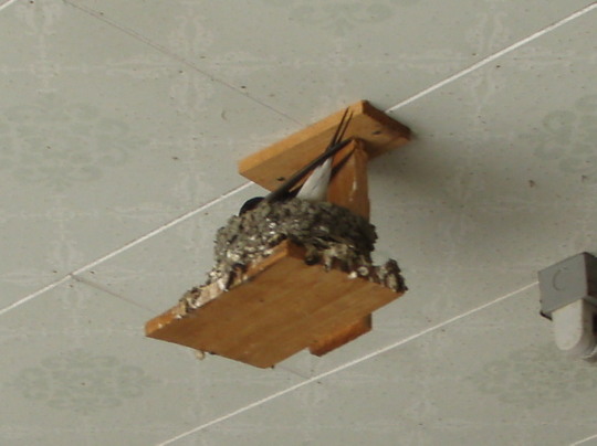 釣りに行った先のガレージの屋根に燕がせっせと巣をつくっていました。初夏ですね。