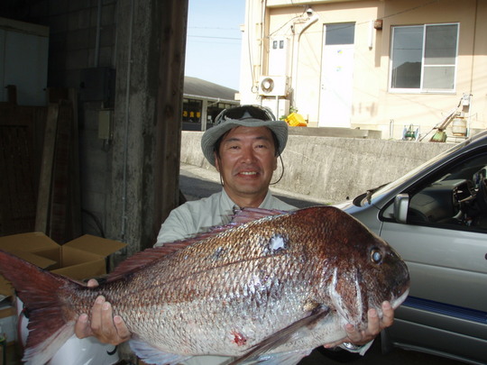 そして度肝を抜いたのは、初登場ながら有名なルアーマン、野田信也さんが一投目に平鱸、二投目にこのマダイ。90センチ9Kgありました