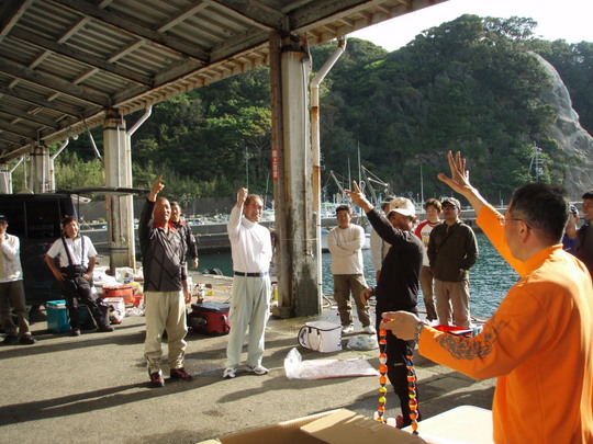 Fショーは懇親会。4月か5月にはこうして磯で会うことにしています。