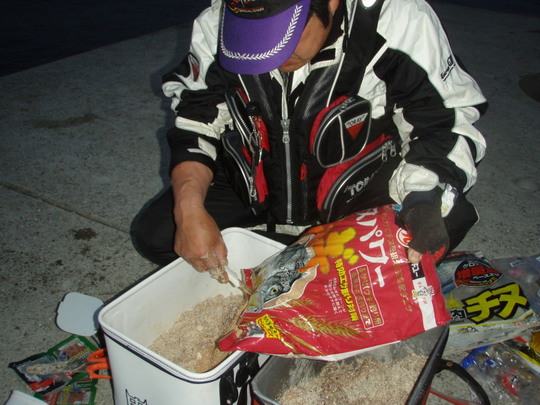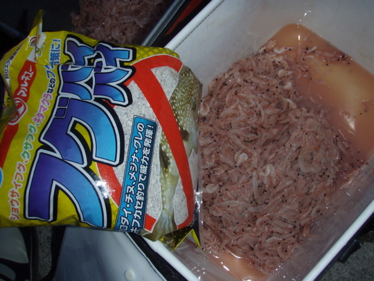 ここでのえさはオキアミ3キロにあとは配合餌
